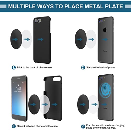 ✅Piastre Metalliche Rettangolari e Rotonde: ti offriamo più opzioni da applicare su più dispositivi con 4 piastre rotonde e 4 rettangolari. Rettangolare (65x45 mm) per telefoni più grandi, GPS o mini-tablet, mentre Rotondo (40 mm di diametro) per telefoni cellulari o dispositivi più piccoli.