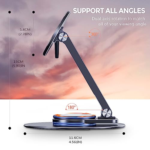 Lucrave Supporto Magnetico per Telefono da Scrivania, Supporto Standby Regolabile in Alluminio con Rotazione a 360° Supporto da Viaggio Portatile Compatibile con iPhone 15 14 13 12 Pro, Galaxy S24 S23
