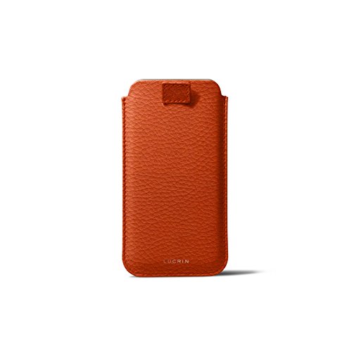 Lucrin - Custodia Compatibile con iPhone SE 2020/ iPhone 8/ iPhone 7 con Linguetta - Arancione - Pelle Ruvida