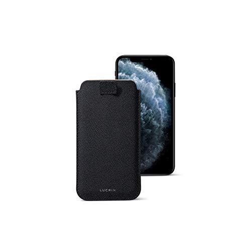 Lucrin - Custodia Compatibile con iPhone 11 PRO/iPhone XS/iPhone X con Linguetta - Nero - Pelle di Capra