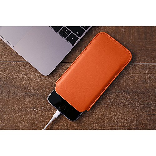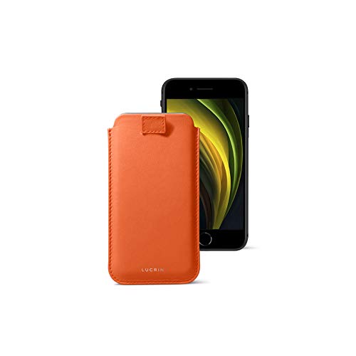 Lucrin - Custodia per iPhone 7/6/6s con linguetta sollevabile - Arancione - Pelle Liscia