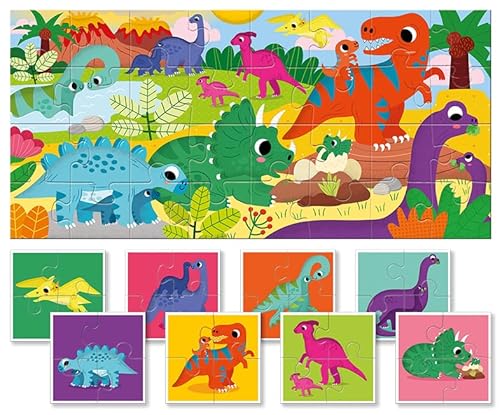 Ludattica - Baby puzzle Dinosauri - Puzzle 32 pezzi bambini 2+ - Due giochi in uno - Dimensione 67 x 32 cm - Made in Italy
