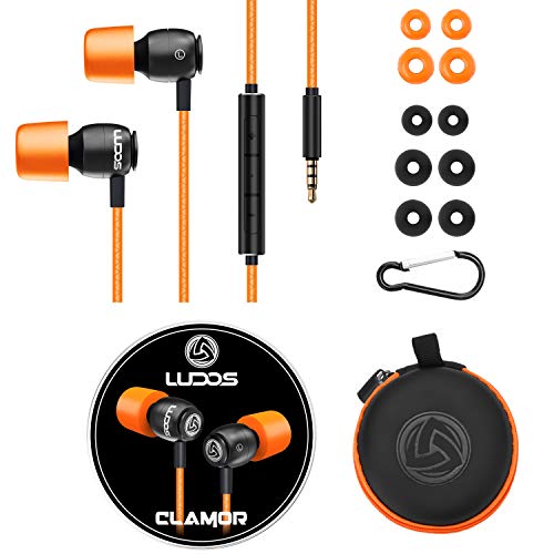LUDOS CLAMOR Auricolari In-Ear Cuffie con Microfono, Cuffiette Audio di alta Qualità, Memory Foam, Cavo Rinforzato, Bassi, Controllo del volume per iPhone, Samsung, Huawei, Computer, Portatile, PC