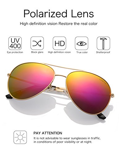 LUENX Donna Aviatore Polarizzate occhiali da di guida con il caso - Protezione UV 400 Specchio Rosso Lenti Oro Telaio 60mm