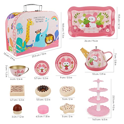 LUFEIS Set da Tè per Bambini, Set Accessori Cucina Giocattolo per Bambini, Set da Tè in Latta, Servizio da Tè e Valigia, Set da Tè Gioco per Bambini 3-8 Anni Giocattolo per Giochi di Ruolo - 32 Pezzi