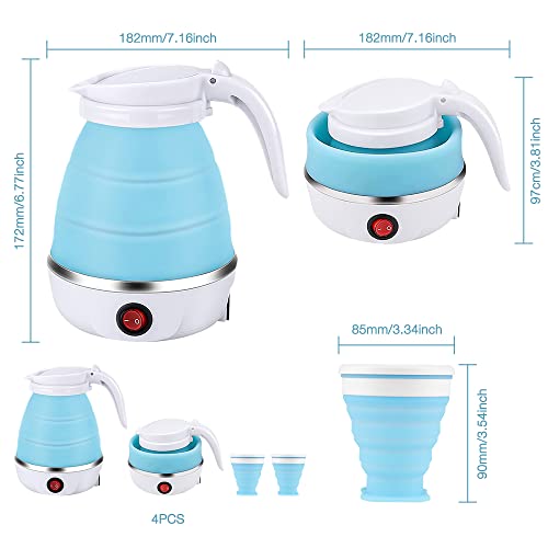 LUFEIS Bollitore Elettrico Pieghevole, 0,6 Litri Bollitore Pieghevole Da Campeggio con 2 Tazze Pieghevoli, Mini Bollitore Portatile Per Escursioni All'aperto Sopravvivenza in Bicicletta