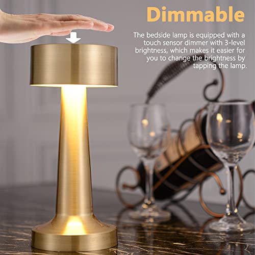LUFEIS Lampada da Tavolo Senza Fili, Lampada A Led Ricaricabile, Lampada da Comodino Camera da Letto Dimmerabile Touch, 3 Modalità Di Colore, per Sala da Pranzo,Camera da Letto(Oro)