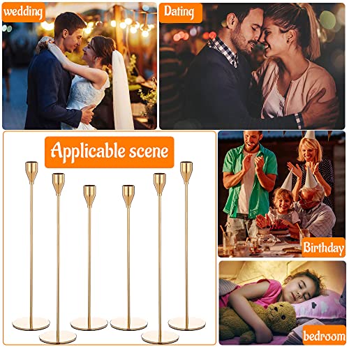 LUFEIS Portacandele Dorati, Set di 6 Dorato in Ottone Candeliere, Candelabro Creativo di Ferro, Portacandele in Metallo Alto, Candelieri per Matrimoni, Cene a Lume di Candela, Decorazioni per la Casa