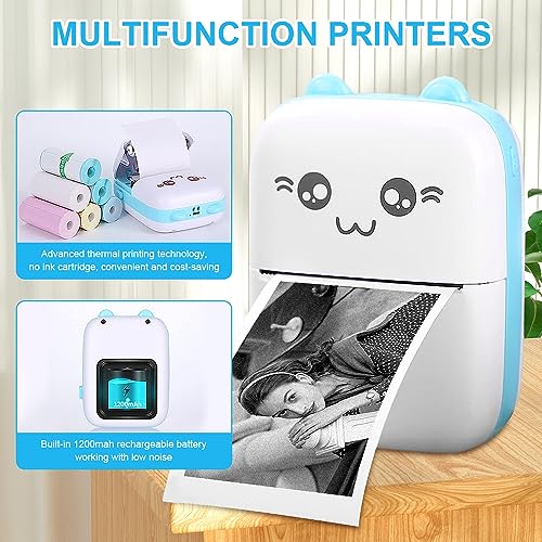 LUFEIS Mini Stampante Termica,Stampante Fotografica Istantanea Portatile,Mini Stampante Termica Bluetooth,con cavo USB+14 Rolls Sticker Paper per Smartphone Android iOS,la stampa di note/diario (Blu)