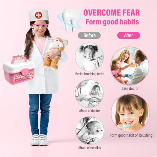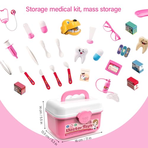 LUFEIS Valigetta Dottore Bambini, 47 Pezzi Medico Giocattolo, Kit Dottore Giocattolo per Bambini, Kit Medico Gioco con Luci, Gioco di Ruolo Giochi Bambini 3 4 5 Anni, Rosa
