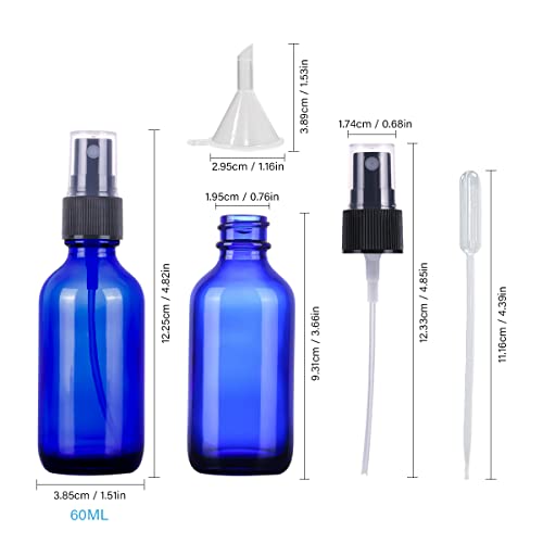 LUFEVRM Flacone Spray in Vetro Blu da 60 ml,Bottiglia Flaconi Spray per nebulizzazione fine da viaggio riutilizzabili piccoli vuoti per pulizia, aromaterapia e olio essenziale(2 pezzi)