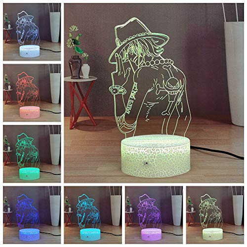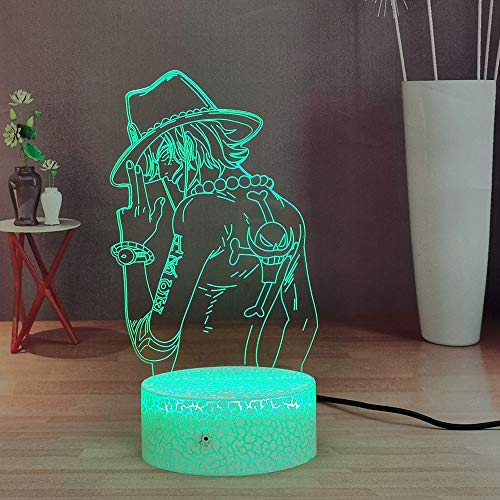 Luffy 3D Night Light, One Piece Anime LED Lampada da tavolo a distanza per camera da letto, regalo di Natale di compleanno per ragazzi (Crack Ace)