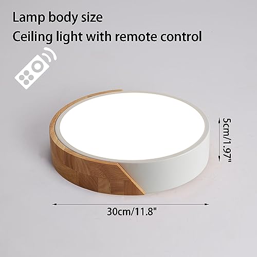 LuFun Plafoniera LED Soffitto Dimmerabile, 3000K-6000K Lampadario LED Soffitto con Telecomando, 24W Moderna Plafoniere in Legno per Soggiorno Cucina Camera da letto Corridoio Balcone Ufficio,Ø30cm