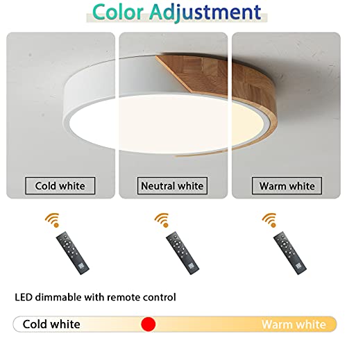 【Dimmerabile e controllabile da telecomando e app】 Plafoniera led in legno è dimmerabile (luce bianca fredda 6000K - luce naturale 4000K - luce bianca calda 3000K), la luminosità può essere regolata dal 10% al 100% (telecomando incluso). Può essere controllato anche tramite l'app sul cellulare. Con l'app è possibile accendere/spegnere la luce, cambiare la temperatura di colore e regolare la luminosità. È molto confortevole, vi permetterà di vivere meglio e di dormire meglio.