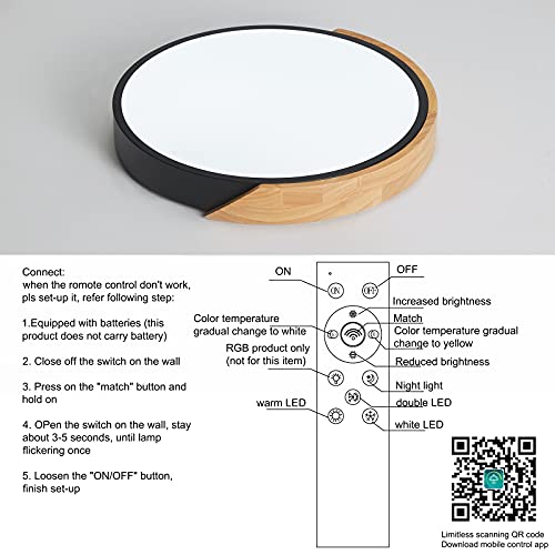 【Dimmerabile e controllabile da telecomando e app】 Plafoniera led in legno è dimmerabile (luce bianca fredda 6000K - luce naturale 4000K - luce bianca calda 3000K), la luminosità può essere regolata dal 10% al 100% (telecomando incluso). Può essere controllato anche tramite l'app sul cellulare. Con l'app è possibile accendere/spegnere la luce, cambiare la temperatura di colore e regolare la luminosità. È molto confortevole, vi permetterà di vivere meglio e di dormire meglio.