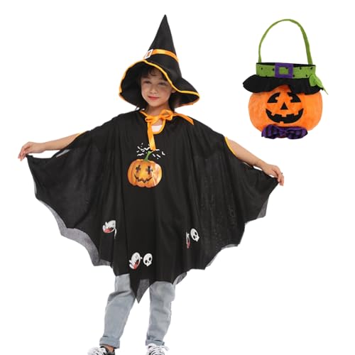 LUISAS bambini in costume di Halloween, ragazza in costume da zucca, Mantello da pipistrello di Halloween con cappello + borsa di zucca, Adatto per altezza 90-150 cm (nero)
