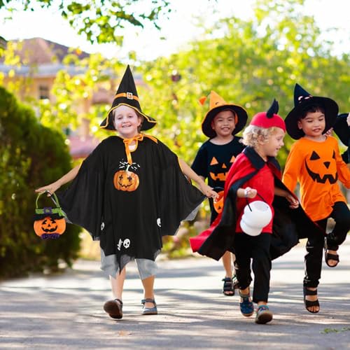 Il costume di Halloween per bambini è composto da un mantello e un cappello, include anche una confezione di zucca che può essere facilmente riempita di caramelle dai bambini, disponibile in nero, rosso e arancione per offrire ai bambini costumi da festa unici.