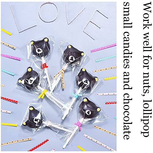 【Pacchetti Valore】un totale di 300 pezzi, contiene 100 pezzi di sacchetti di cellophane trasparente, 100 pezzi di bastoncini per lecca-lecca, 100 pezzi cravatta. Rendi attraente il tuo lecca-lecca e le caramelle, adatto a tutti i tipi di temi di festa.