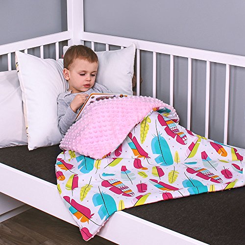 LULANDO Copertina da neonato Coperta per bambino 100% cotone (80x100 cm). Super morbido e soffice, materiale antiallergico, traspirante, Oeko-Tex Standard 100. Colore:: Pink - Colored Feathers