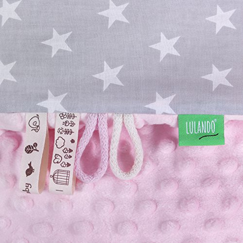 LULANDO Copertina da neonato Coperta per bambino 100% cotone (80x100 cm). Super morbido e soffice, materiale antiallergico, traspirante, Oeko-Tex Standard 100. Colore: Pink - White Stars / Grey
