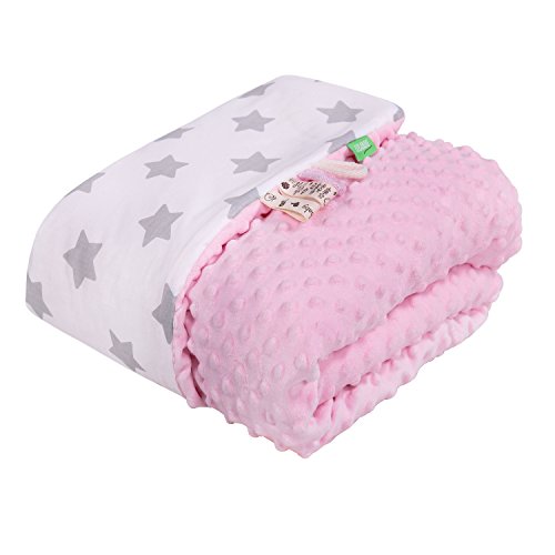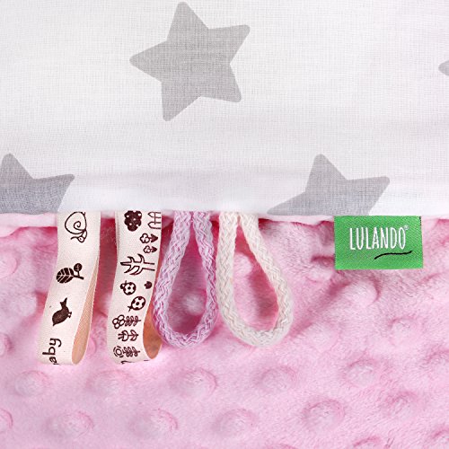 LULANDO Copertina da neonato Coperta per bambino 100% cotone (80x100 cm). Super morbido e soffice, materiale antiallergico, traspirante, Oeko-Tex Standard 100. Colore:: Pink - Grey Stars