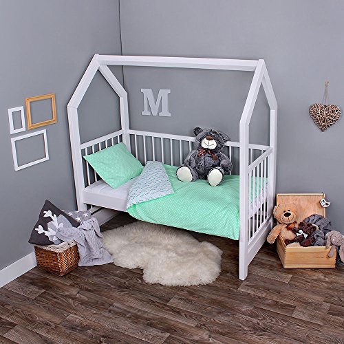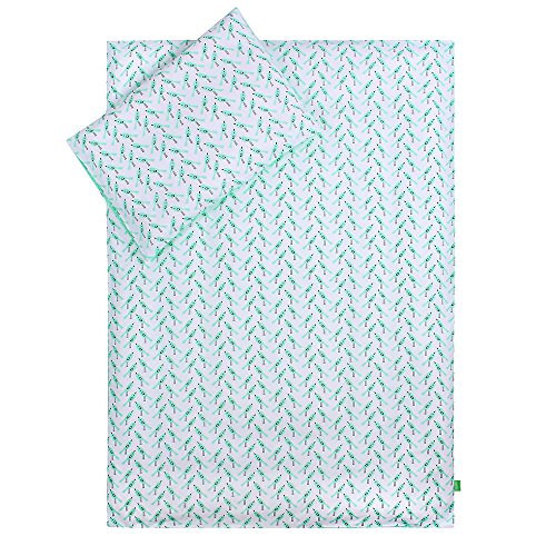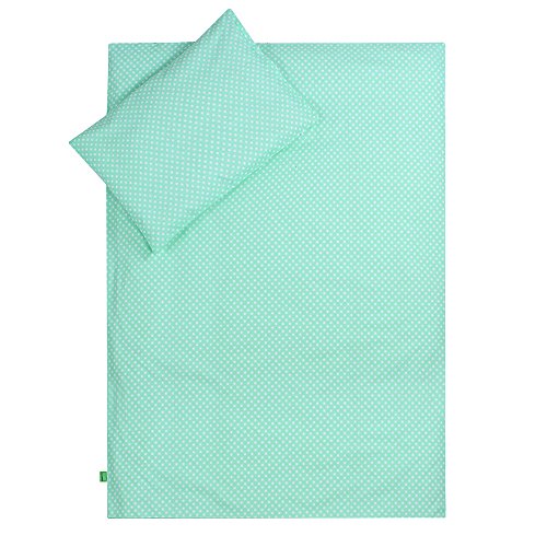 Lulando Lenzuola - Lenzuola per Bambini, Completo da 2 Pezzi: Cuscino e Copri-Piumino - Turquoise Dots/Turquoise Birds - 400 g