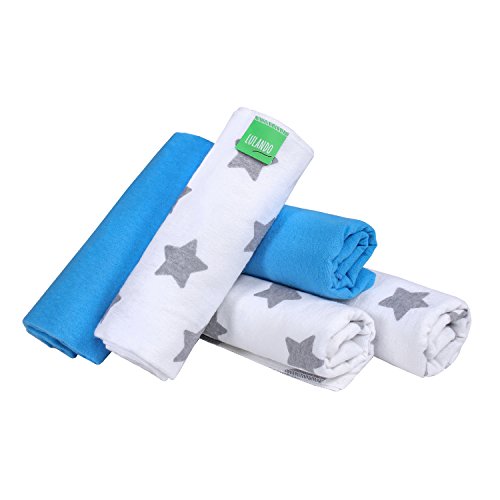 Lulando Pannolini Lavabili in Flanella Confezione da 5 Dimensioni 70 X 80 Cm, Copertine, Teli in Flanella per Neonato White/Grey Stars/Blue - 500 g