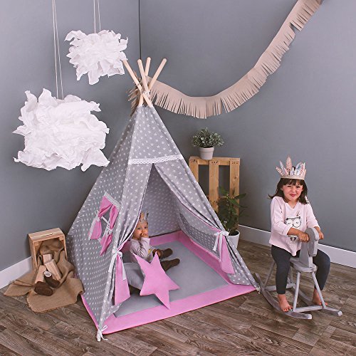 Lulando Tipi Teepee Tenda Giochi per Bambini, Rosa/Grigio/Stelle - 4 kg