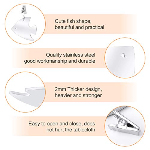 【BEN FATTO】: Il morsetto per tovaglia è realizzato in materiale di alta qualità in acciaio inossidabile, antiruggine, robusto e durevole. Ed è lavorato con una lavorazione fine, quindi la sua superficie è molto liscia e senza sbavature, che può proteggere la tua tovaglia dai graffi ed è amichevole per le tue mani.