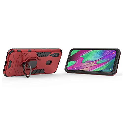 LuluMain Compatibile con Galaxy A40 Cover, Custodia Armor Anello Cavalletto (Funziona con Il Supporto Magnetico per Auto) Case Paraurti per Samsung Galaxy A40 (Rosso)
