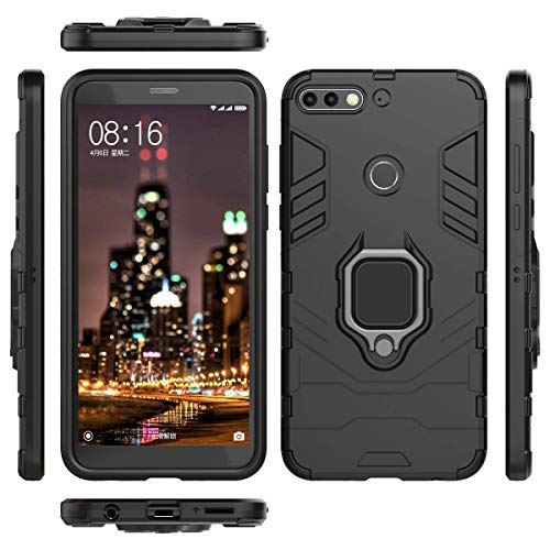 LuluMain Compatibile con Huawei Y7 Prime (2018) Cover, Custodia Armor Anello Cavalletto (Funziona con Il Supporto Magnetico per Auto) Case Paraurti per Huawei Y7 Prime 2018, Honor 7C (Nero)