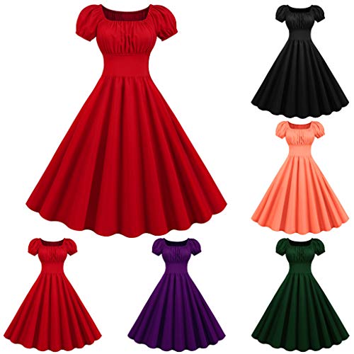 Lulupi Donna Anni '50 '60 Abiti Vintage Abito A Pieghe Maniche A Sbuffo Swing Vestito Scollo Squadrato Rockabilly Cocktail