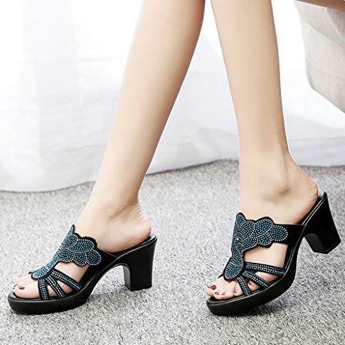 Lulupi Sandali Con Tacco Medio Eleganti Donna Strass 2020 Estivi New Moda Ciabatte Decorazione Floreale Con Plateau Scarpe Casuale Comode Party