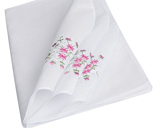 LULUSILK Fazzoletto in cotone da donna/donna ricamato con pizzo 6 pezzi - rosa floreale