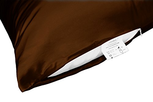 Lulusilk - Federa in 100% seta di gelso di allevamento, 19 momme, prendetevi cura della vostra pelle e prevenite la caduta dei capelli con la chiusura lampo invisibile, cioccolato, 40 x 80 cm