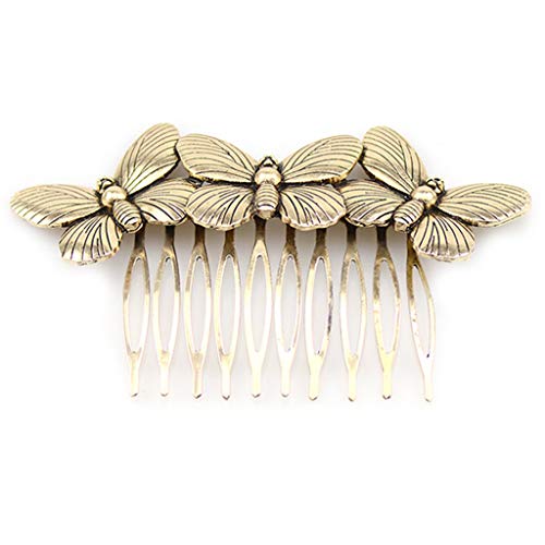 Luluspace - Pettine per Capelli da Sposa, in Lega di Metallo, Stile Vintage, con Ali di Insetti, Colore: Oro e Argento G