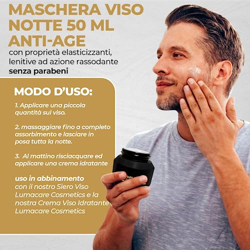 Lumacare Cosmetics - Maschera Viso Antirughe, Idratante e Nutriente da 50 ml - Maschera Notte a base di Bava di Lumaca - 100% Made in Italy - Crema Viso Anti-Età elasticizzante, lenitiva e rassodante