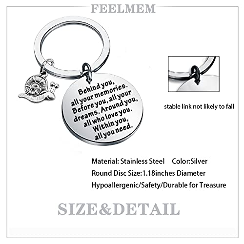 ❤Portachiavi con ciondolo a forma di lumache❤Portachiavi con motivo inciso a mano, dietro di te, tutti i tuoi ricordi. Prima di te, tutti i tuoi sogni. Intorno a te, a tutti coloro che ti amano. All'interno di te, tutto ciò di cui hai bisogno.