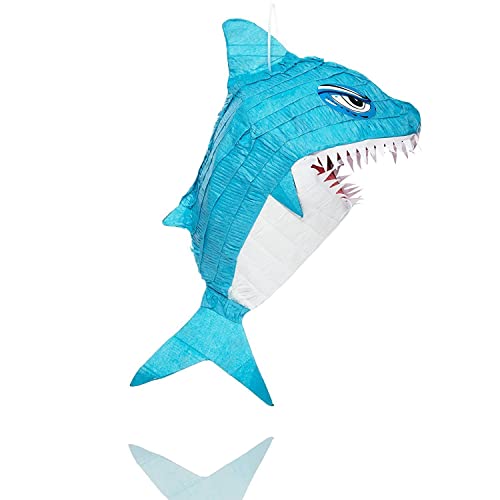 Blue Hai - Set Pinata di Lumaland con squalo impertinente pinata in blu fresco - Bastone, maschera per gli occhi e sacchetto di coriandoli da 50 g sono inclusi nel set. Il classico della Fiesta dal Messico diventa rapidamente il popolare petardo anche in Germania: ravviva la tua festa;
