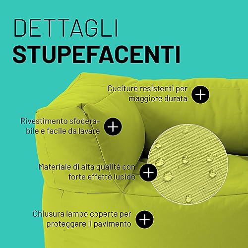 Lumaland Poltrona a Sacco Modulare | Impermeabile, per Interni ed Esterni, Lavabile, per Giardino e Enterni, Dacile da Espandere e Leggero | 96 x 72 x 70 cm [Verde Mela]