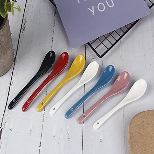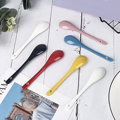 Lumanuby - Set di 1 cucchiaio in porcellana per uova, cucchiaio da dessert, posate in ceramica, Porcellana, colore casuale, 7pcs