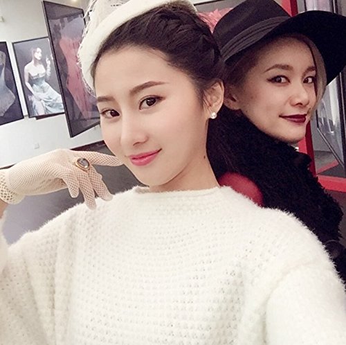 Lumanuby - Guanti in retina e pizzo per donna, accessorio da matrimonio, lunghezza 16 cm, colore bianco, bianco, 16 cm