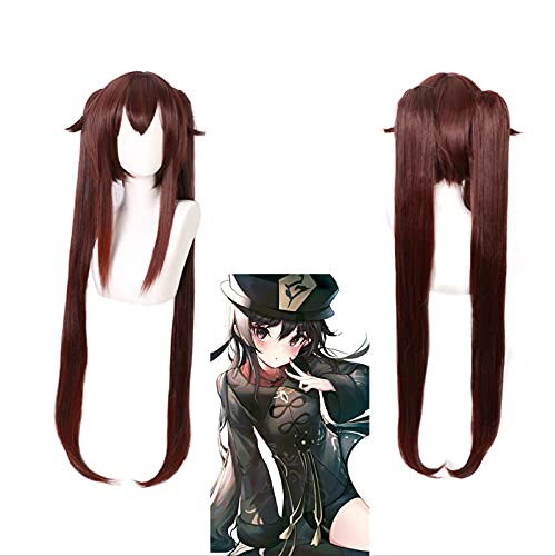 Lumaou Parrucca Cosplay Anime Genshin Impact Hu Tao Parrucca Lunga Dritta Marrone+1×Berretto Parrucca Gratuito