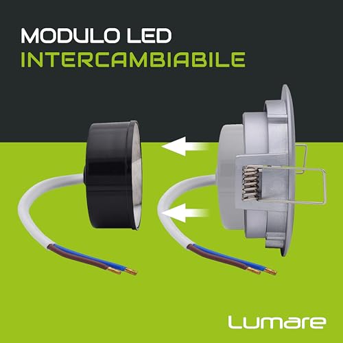 Faretto di alta qualità: Il faretto da soffitto Lumare 4W fornisce una luce calda e priva di sfarfallio con un basso consumo energetico. Grazie alla classe di protezione IP44, è adatto anche a locali umidi. Grazie al trasformatore integrato, gli spot a soffitto possono essere collegati direttamente a 230V. Grazie al terminale di connessione integrato, il collegamento è facile e veloce.