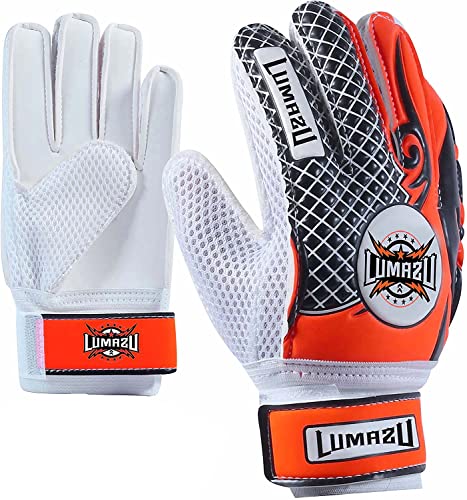 LUMAZU Guanti da portiere, ragazzi e ragazze, con doppia protezione contro il polso e materiale antiscivolo in lattice resistente all'usura per dare protezione per prevenire lesioni (6/7, Rosso)