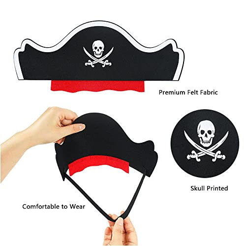 La copertura per l'occhio del teschio e l'orecchino d'oro sono realizzati in plastica, affidabile e leggera, la collana a catena con ciondolo è in metallo, resistente e durevole e il cappuccio del pirata con teschio è in raso, assemblato con un cinturino elastico nero che avvolge la testa, comodo da indossare.