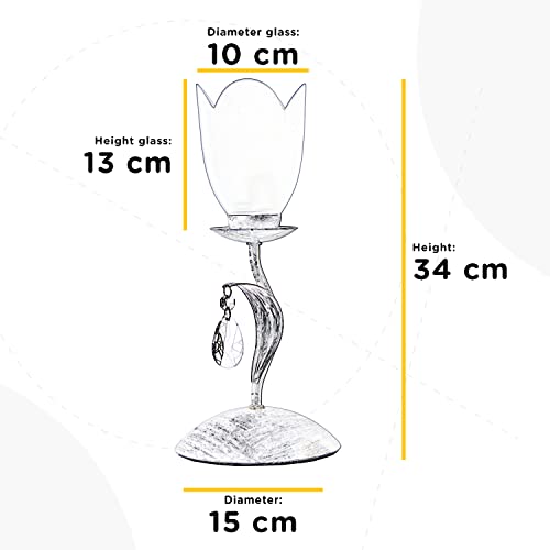 ha uno stile classico, raffinato ed elegante, impreziosito dalla luminosità delle spennellature argento e delle gocce in cristallo che pendono dalle foglie in metallo della struttura