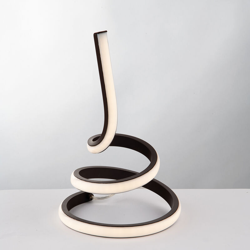 Collezione Nodo DESIGN MODERNO E CONTEMPORANEO Lumetto moderno in metallo e alluminio verniciato marrone moka con led integrato. Riccioli di luce led che caratterizzeranno in modo unico e distintivo ogni ambiente. Nuovo concetto di illuminazione dal design distintivo per arredare o rinnovare ogni ambiente di casa o di lavoro. Design, efficienza e altà qualità per questa lampada da tavolo.