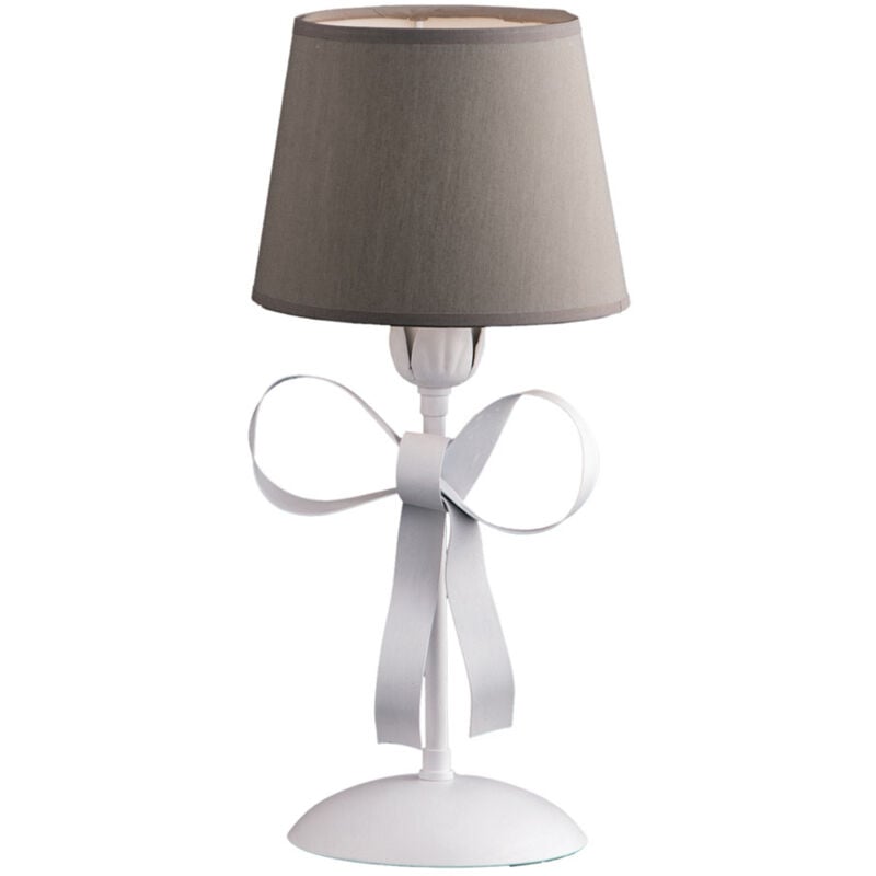 Collezione Lucy UN SEMPLICE FIOCCO E L'ARREDO È FATTO Lumetto a 1 luce con struttura in ferro laccato bianco con decorazione effetto shabby chic e paralume in pvc tortora.. Il lumetto Lucy è una soluzione dal design moderno ed elegante, perfetto per illuminare e decorare la tua casa in stile shabby. Il metallo è stato lavorato con precisione per creare una forma unica, che attira lo sguardo e conferisce un tocco di eleganza all'ambiente. Essendo prodotti realizzati artigianalmente, su richiesta è possibile effettuare piccole modifiche o personalizzazioni al prodotto.