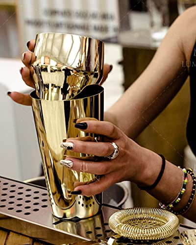 Lumian Luxury Bar Tools L0169 Zeus 900 Parisienne Cocktail Shaker Professionale, Acciaio Inox, Placcato Oro, 900 ml